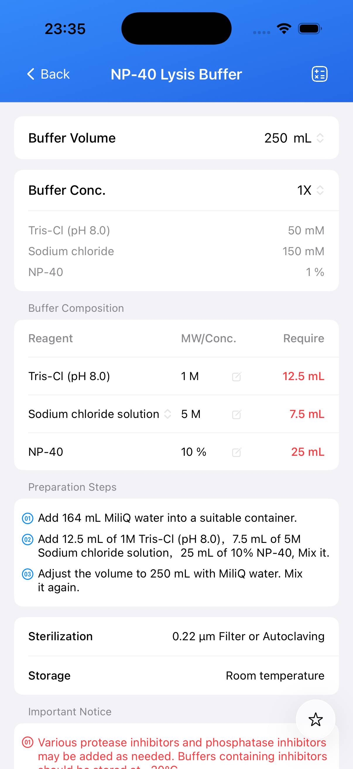 This guide describes the preparation of NP-40 Lysis Buffer at a defined molarity for laboratory use.