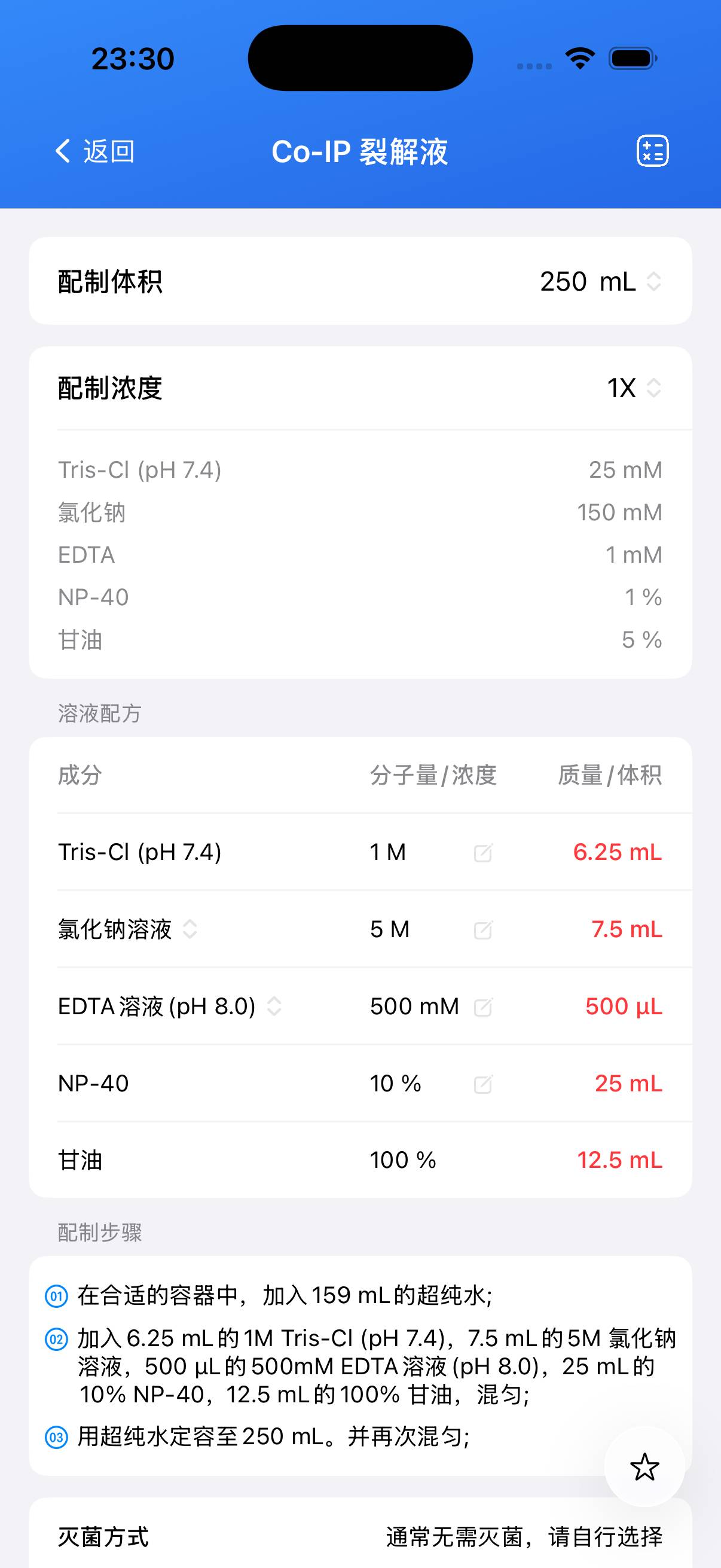 - 灭菌:通常无需灭菌;如需去除微粒或微生物可选择过滤(0.22 μm),但非必须。