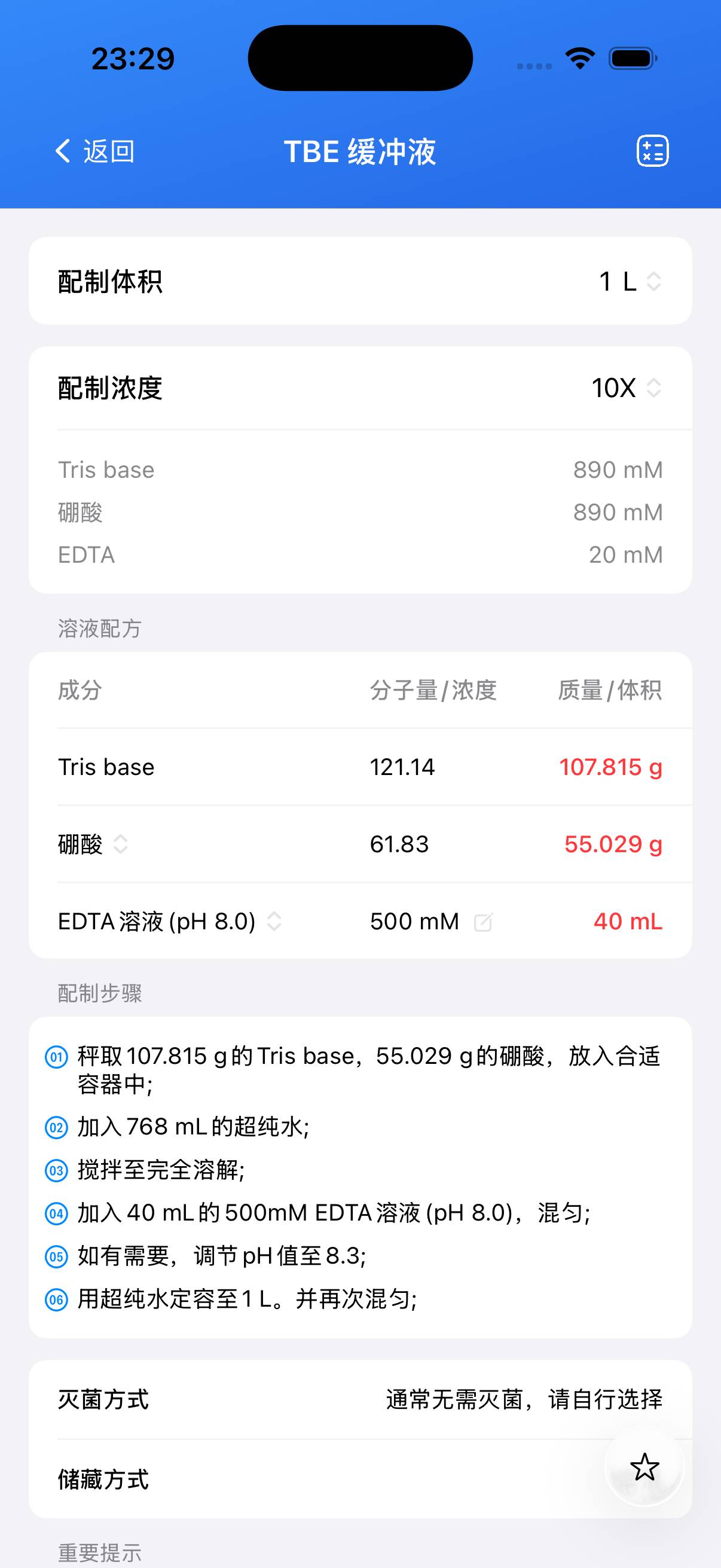 • 有研究表明,使用 EDTA(游离酸)配制的缓冲液在电泳时产热更少,但配制耗时更长;