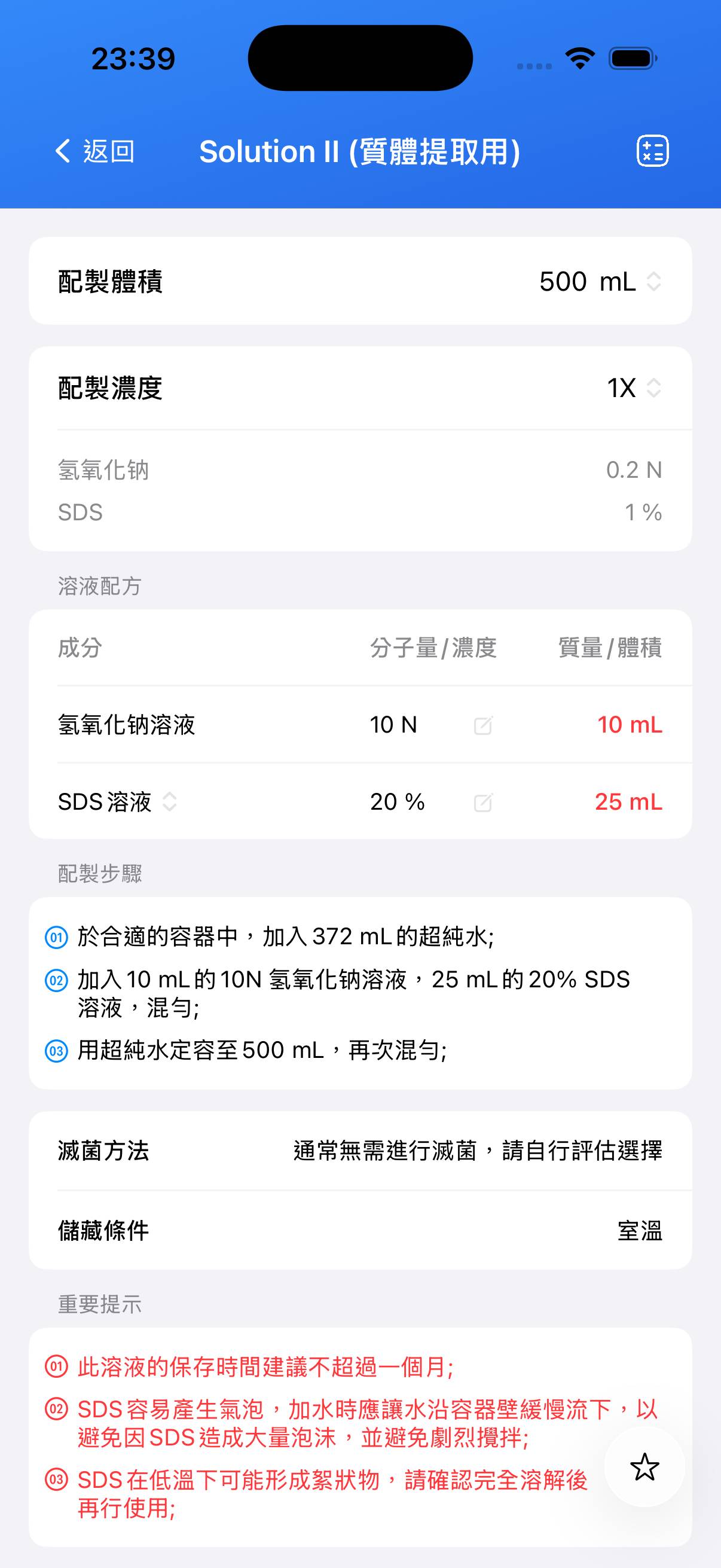 本指南介紹如何製備實驗室使用的特定摩爾濃度的Solution II (質體提取用)。