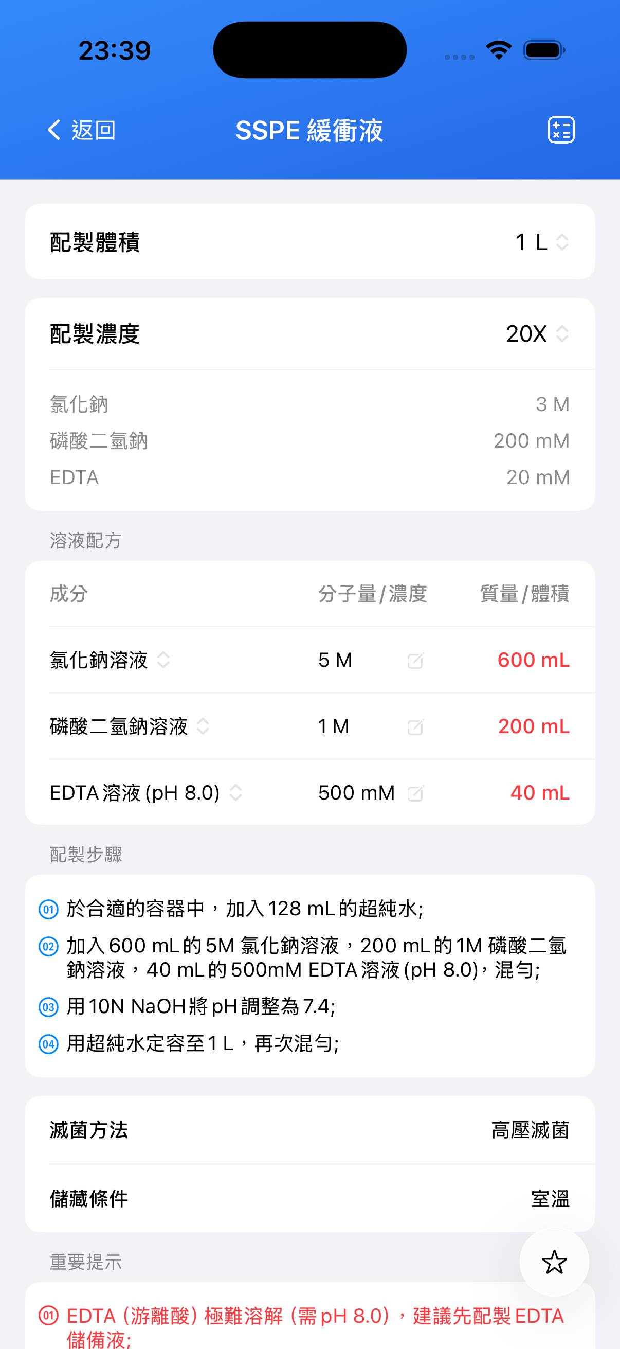 • EDTA(游離酸)極難溶解,建議先配製EDTA儲備液。