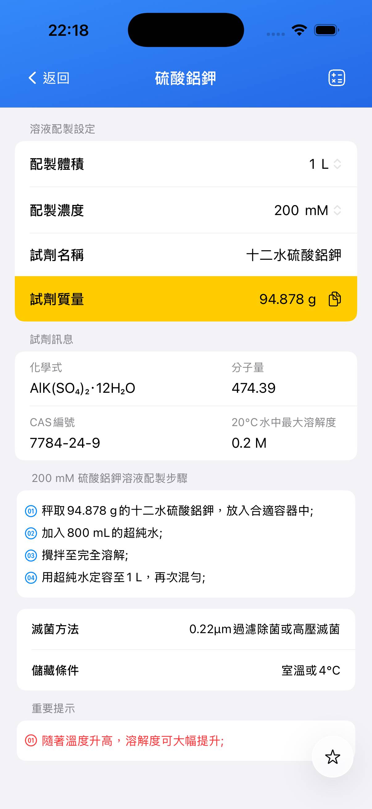 注意:硫酸鋁鉀溶液呈酸性。配製後請在容器上標註濃度及日期並妥善保存。