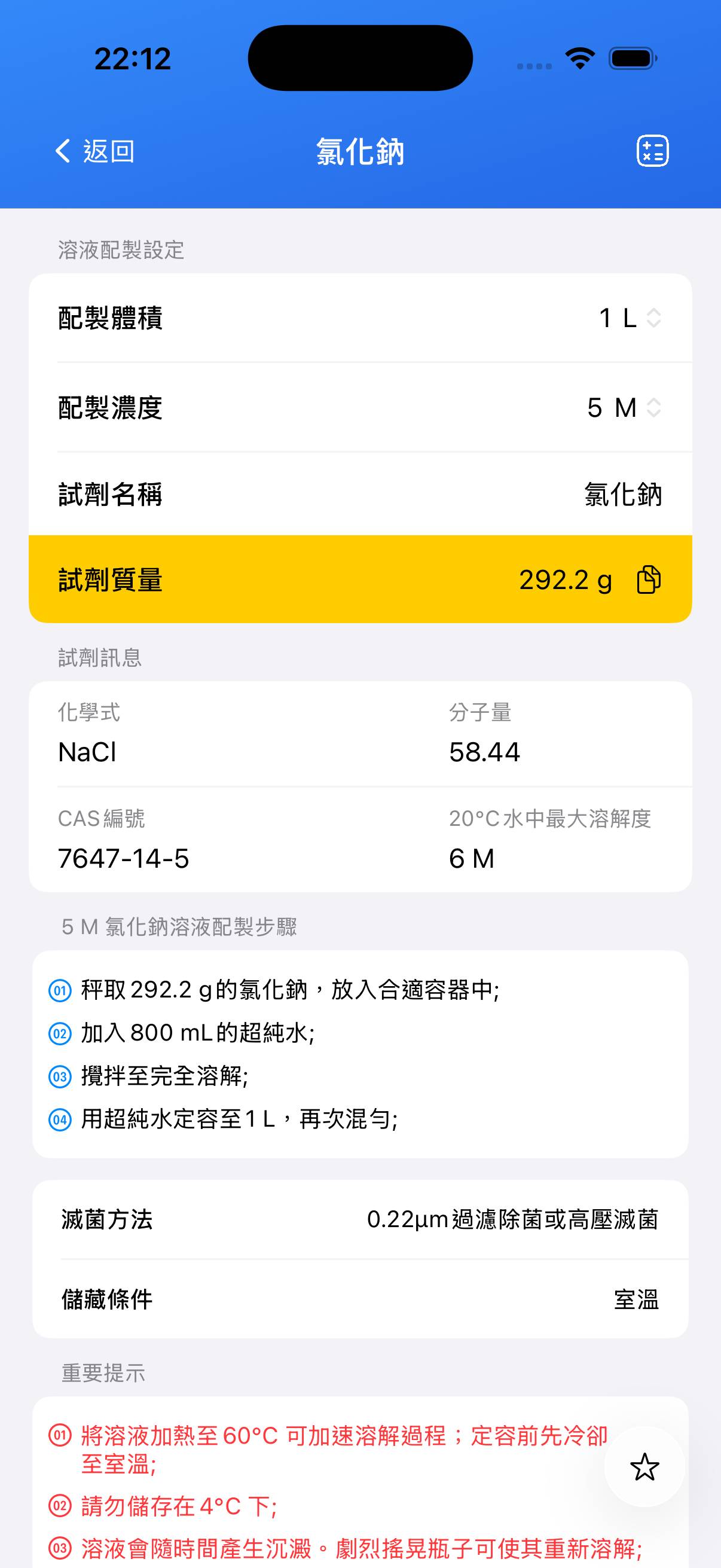氯化鈉 儲備溶液配製指南